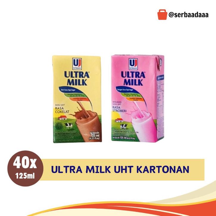 Susu Ultra Milk 125ml 1 Karton Isi 40 Pcs Strawberry Cokelat
