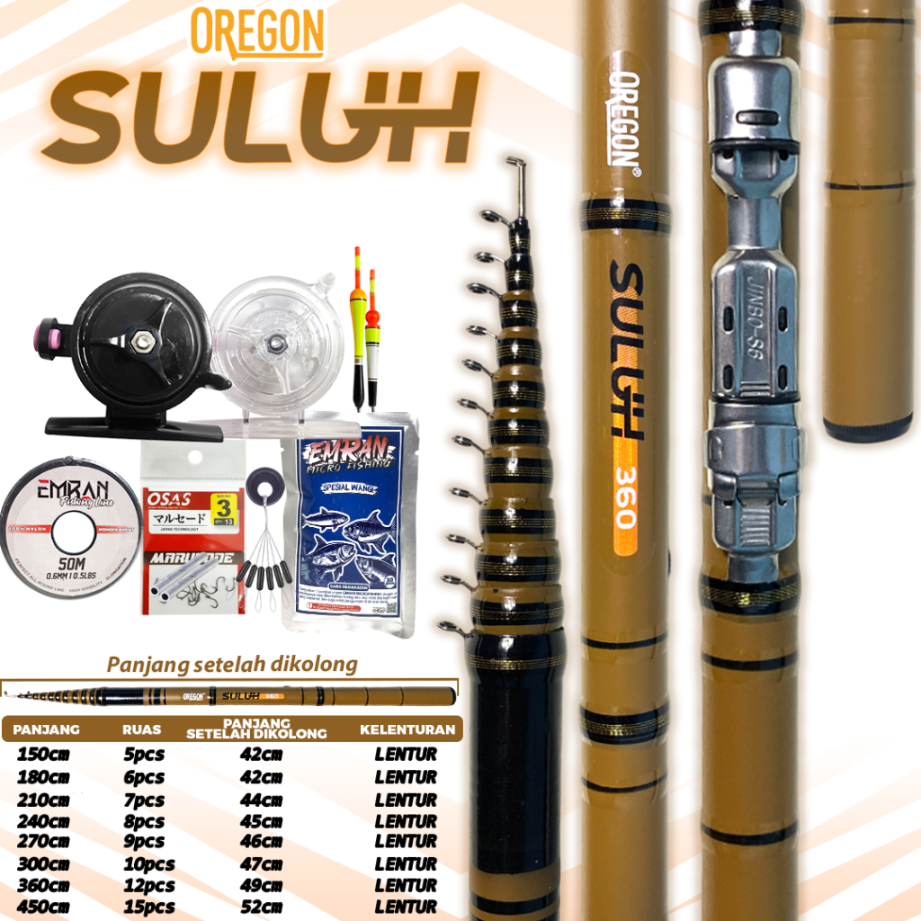 [Star] Joran Tegek Kolong OREGON SULUH Fiber Ring Kuat Ruas Pendek / Pancingan Set Lengkap