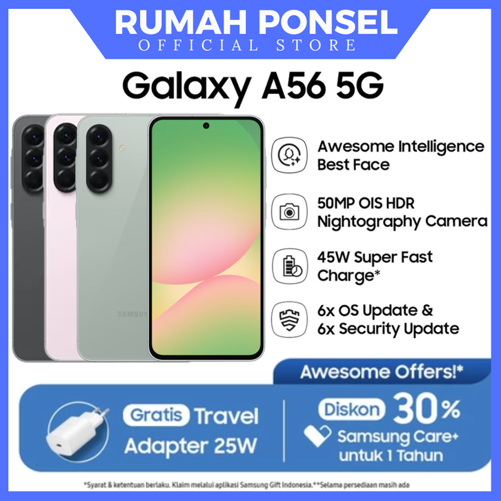 ( OFFICIAL STORE ) Samsung Galaxy A56 5G | 12/256GB 8/256GB | 16GB Extended RAM | Rumah Ponsel Jakarta