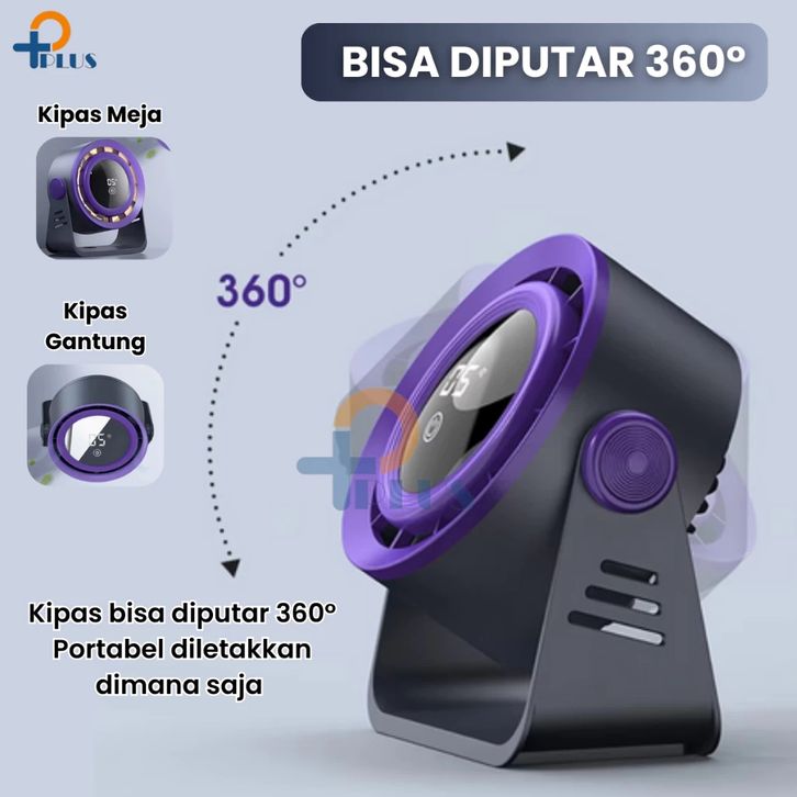 GRATIS ONGKIR - Kipas Angin Meja Portable 5-Speed Wind LED Display Bateria 2000mah Bisa Rotasi 360°