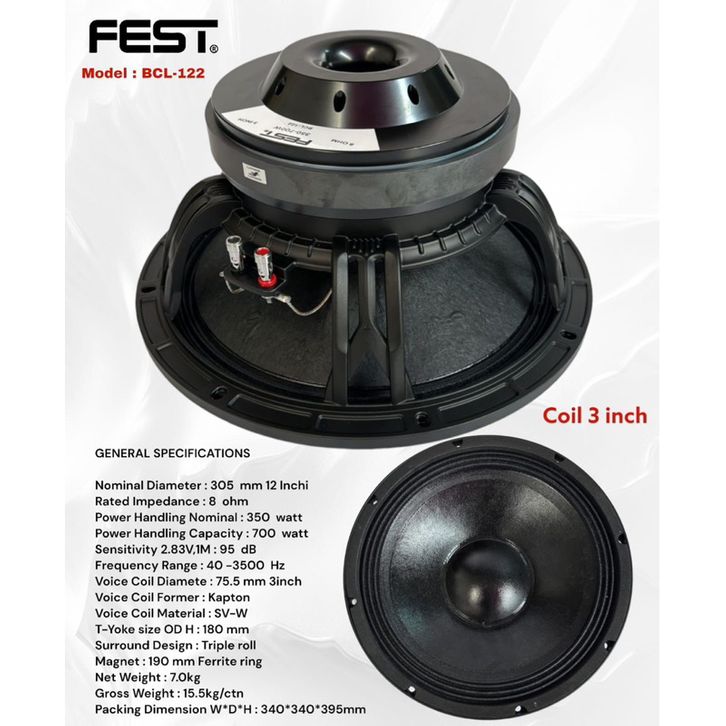 FREE ONGKIR Speaker Component Fest BCL 122 Original 12 inch Komponen FEST BCL-122