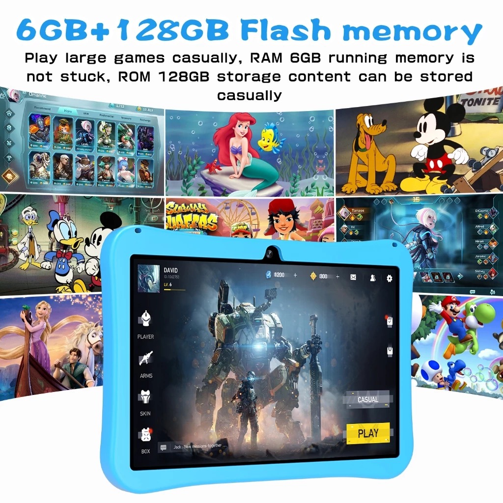 Tablet Anak Hanbai Ram 6/128G Touch Screen10.1inch Android 12 Kids Tablet 2 Kamera Whatsapp Play Store B WiFi Tablet