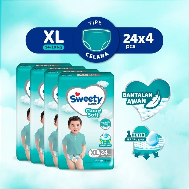 GRATIS ONGKIR Pampers Sweety Silver Pants Cloud Soft Tipe Celana Ukuran XL 24s x 4 BALL / 1 DUS