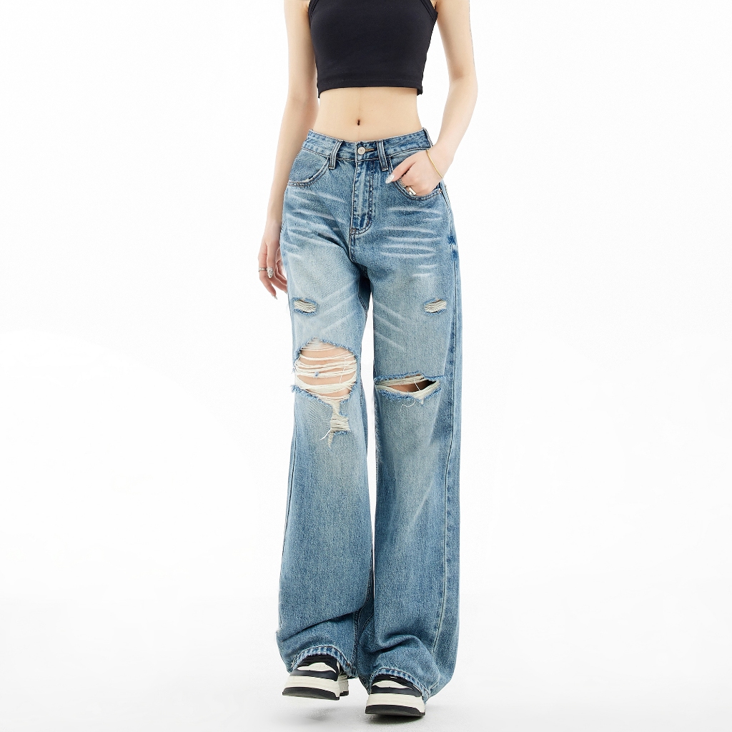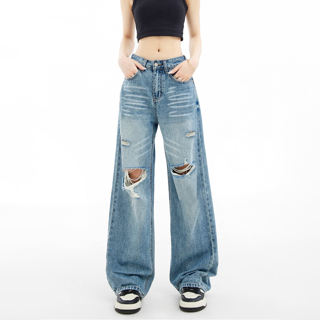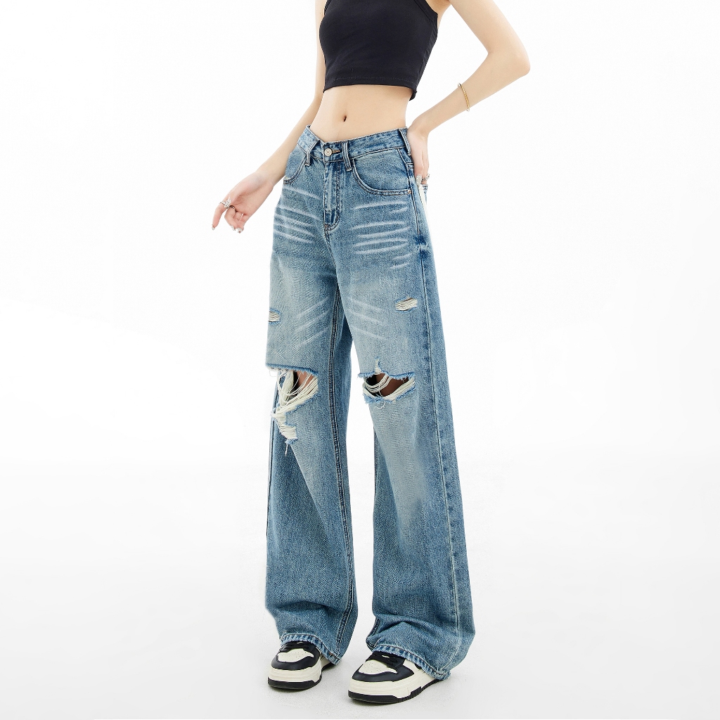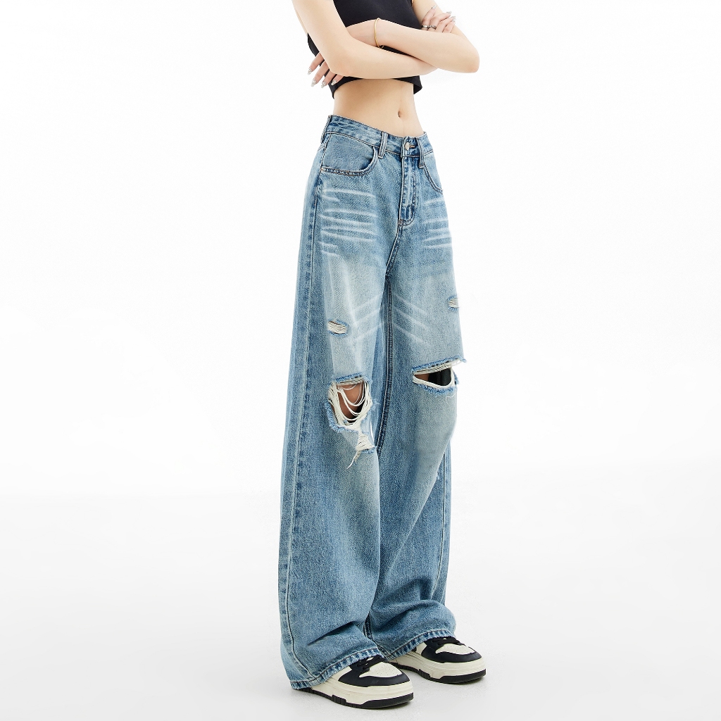 Celana sobek jeans wanita celana boyfriend gaya celana cutbray wanita celana baggy pants wanita ootd JUMBO PANTS