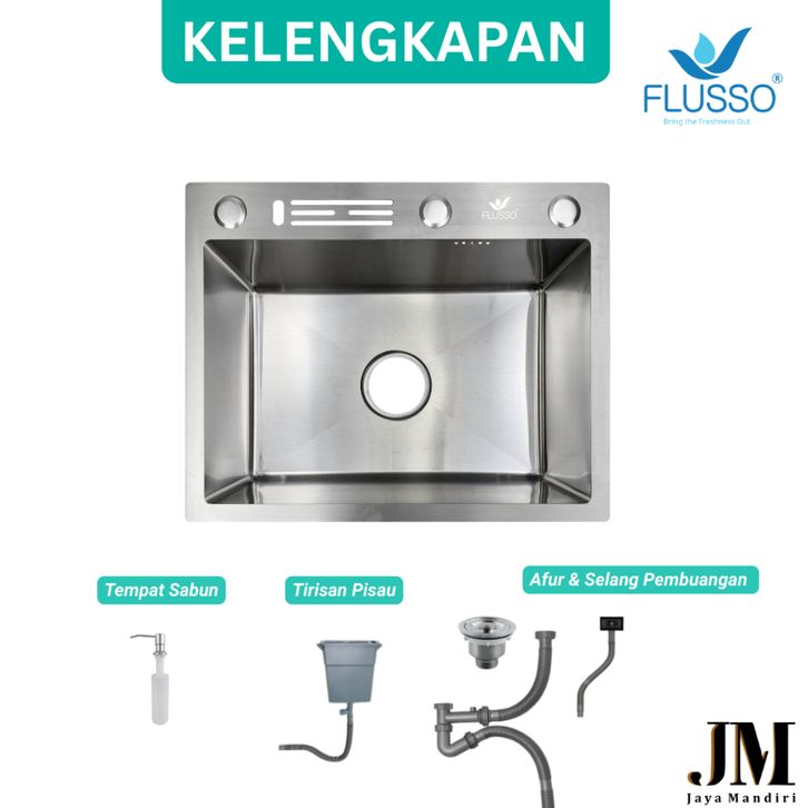Flusso Kitchen Sink Wastafel Cuci Piring Stainless Ukuran 50 x 40 cm Bak Cuci Warna Silver 2875