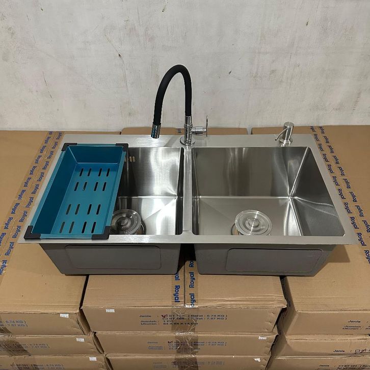 KITCHEN SINK BAK CUCI PIRING STAINLESS 82 x 45 SILVER PAKET LENGKAP