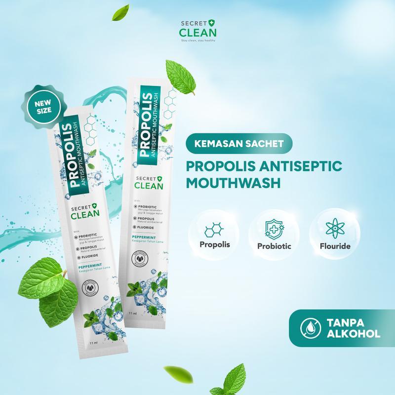Secret Clean Propolis Antiseptic MouthWash 8ml Cooling Blast | Merah Jingga Official