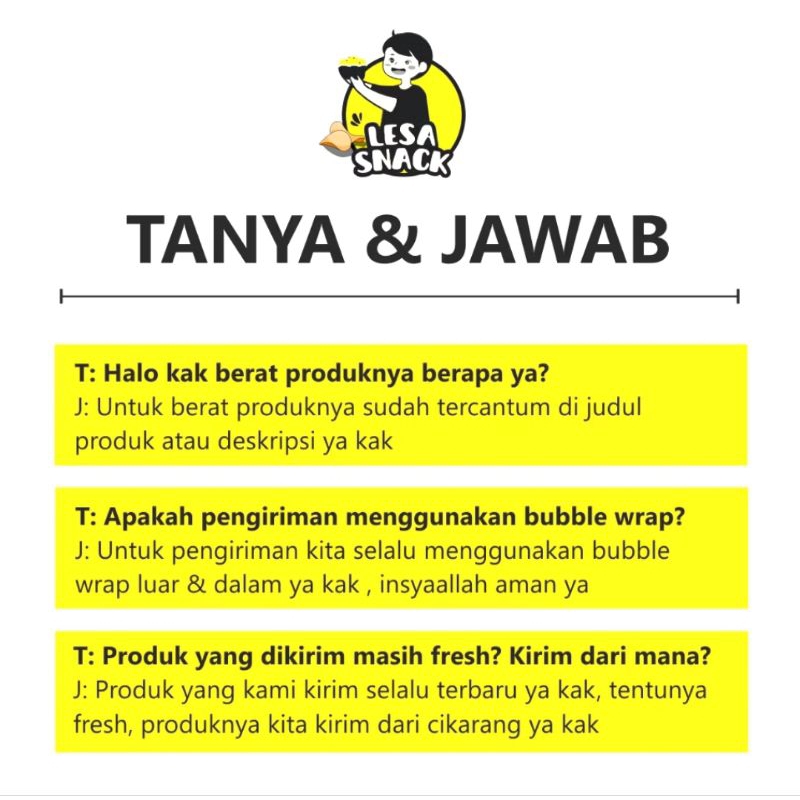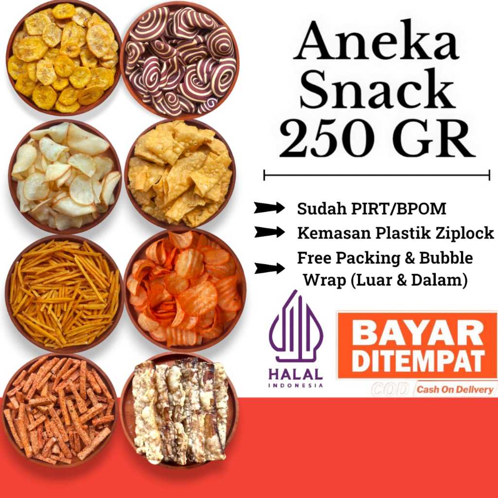 Keripik Singkong ORI, Singkong Balado, Tempe Sagu, Kuping Gajah, Stik Bawang, Stik Talas, Telor Gabus Keju, Kacang Koro, Kacang Campur, Pangsit Rujak, Makaroni Rujak Bali, Makaroni Bantat, Basreng Pedas Jeruk, Keripik Usus Ayam, Pangsit Bawang, Sumpia Udang, Keripik Pisang Asin, Keripik Pisang Manis, Soes Kring, Opak singkong, Pisang sale, Kacang Koro Kupas, Kacang Polong Tepung, Wafer Roll Susu, Wafer Roll Strawbery, Wafer Roll Blueberry, Wafer Roll Pandan, Wafer Roll Vanila, Wafer Roll Cokelat, Kerupuk Kemplang, Ring Cheese, Makaroni Besar Asin, Pillow Coklat, Pang Pang, Kacang Sukro, Makaroni Besar Blado