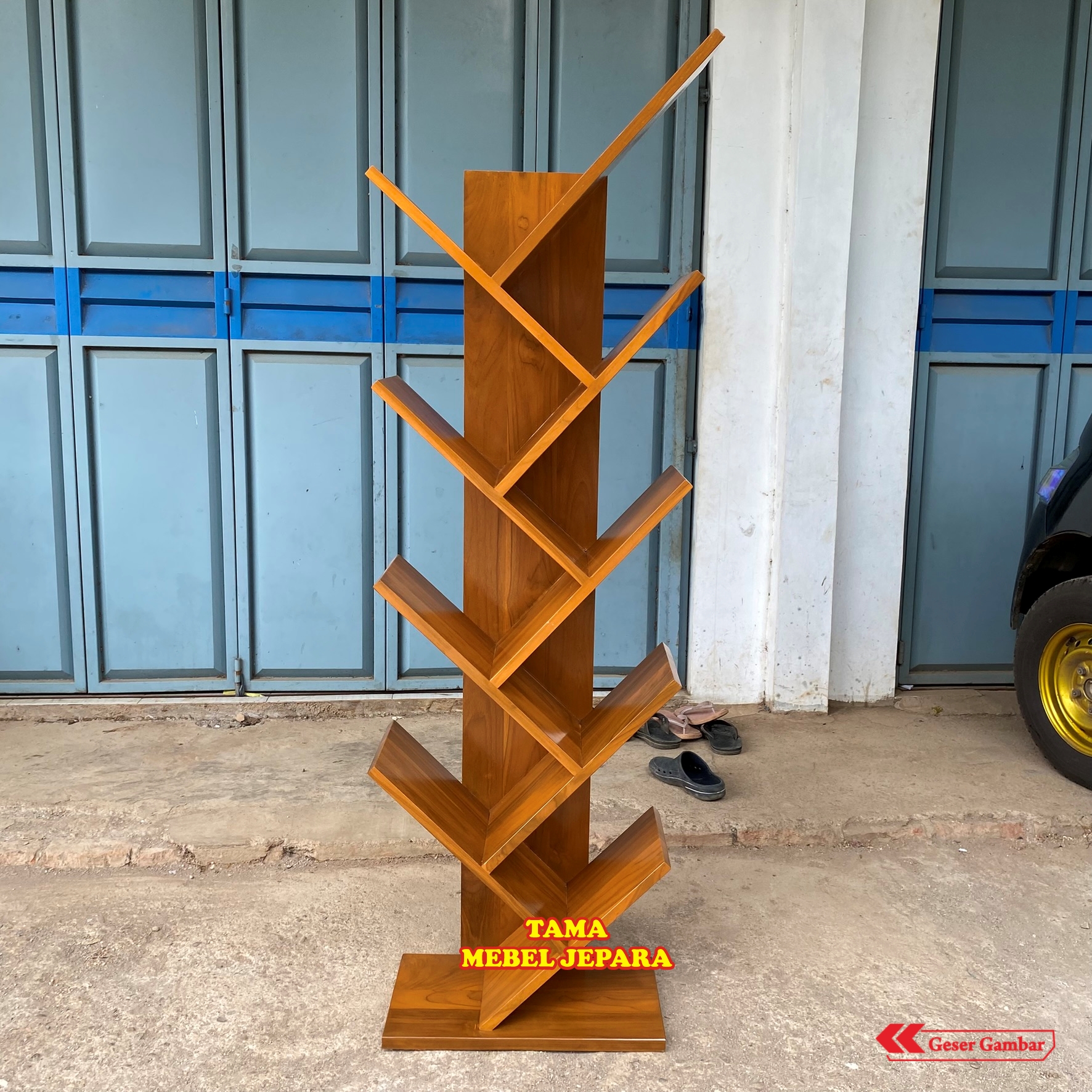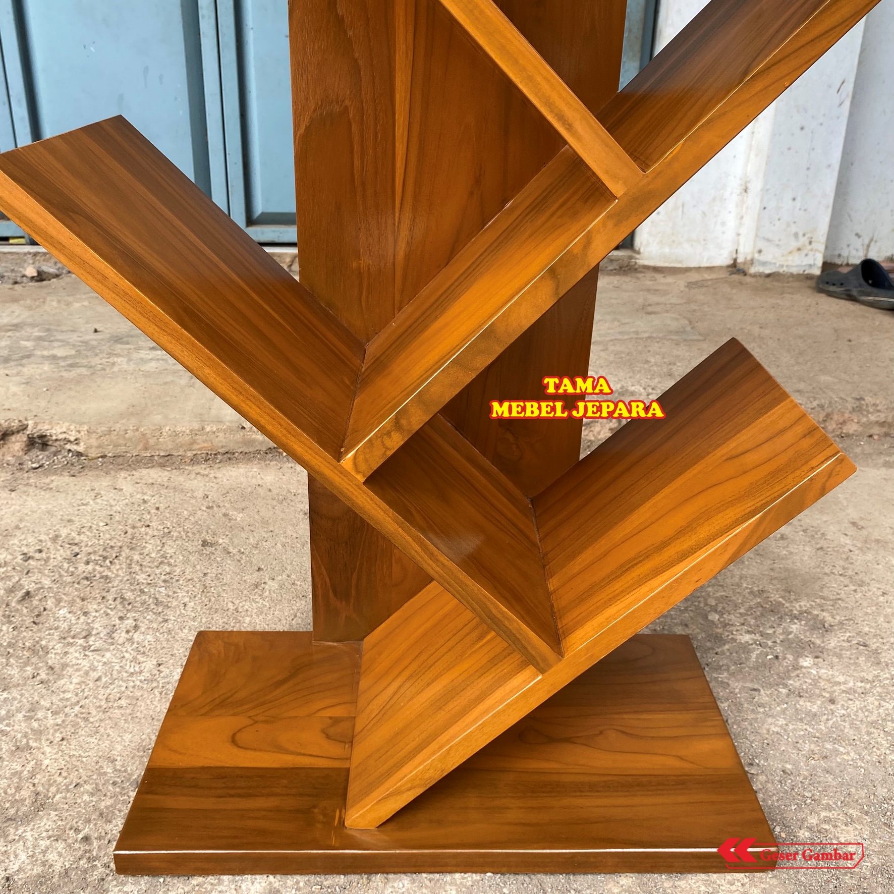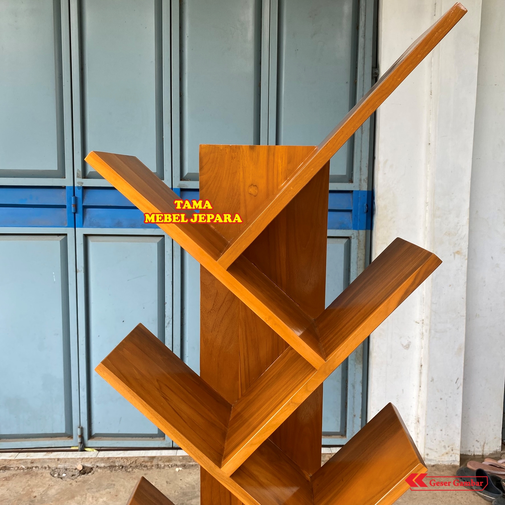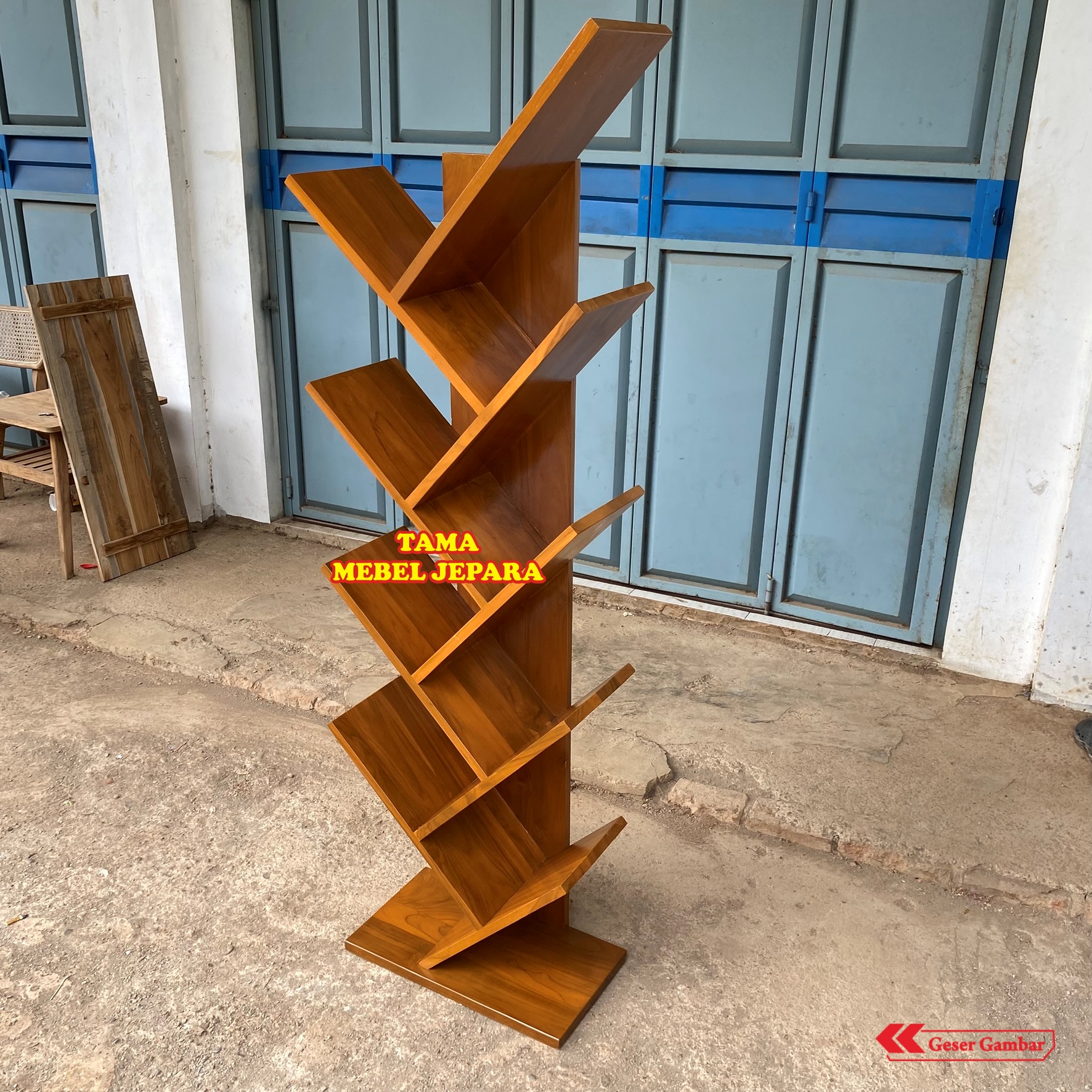 Rak Buku Zigzag Moderen Estetik Kayu Jati Model Pohon