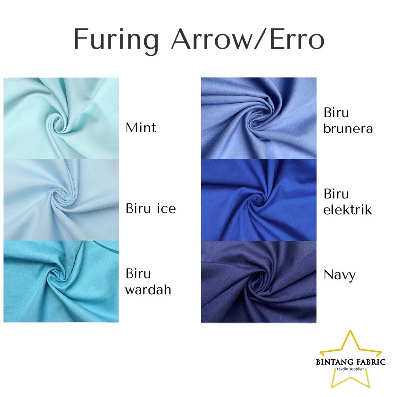Hitam, Navy, Putih Bw, Putih Bersih, Silver, Abu Muda, Abu Tua, Terakota, Orange, Salem, Coksu, Milo, Moka, Khaki, Kopi, Cokelat, Kubus, Lemon, Green Tea, TNI, Olive, Toska Muda, Toska Tua, Hijau Botol Tua, Hijau Botol Muda, Hijau Lembut, Mint, Biru Ice, Biru Wardah, Biru Brunera, Biru Elektrik, Ungu Tua, Lavender, Ungu Muda, Pink Dusty, Marun, Merah Ati, Merah Cabe, Fanta, Pink, Pink Muda