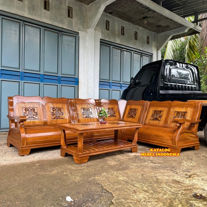KURSI TAMU SUDUT MODEL GAJAH MOTIF UKIR BAMBU KAYU JATI
