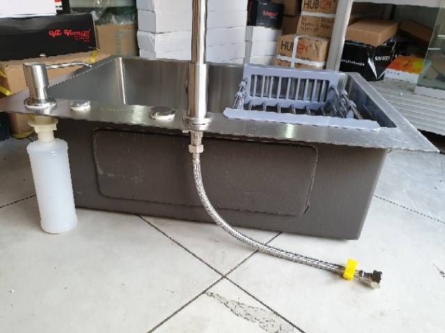 KITCHEN SINK STAINLESS 6045 / Wastafel Bak Cuci Piring Stainless SUS304 Tebal 60cm PAKET KOMPLIT