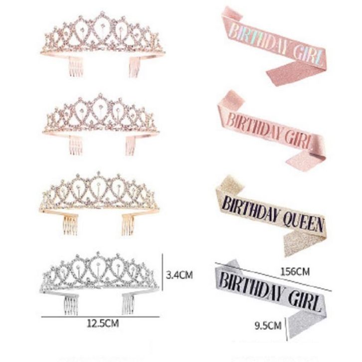 2pcs Tiara Mahkota Selempang untuk Ulang Tahun Komplit Mahkota Sash/Sash and Crown Birthday Queen