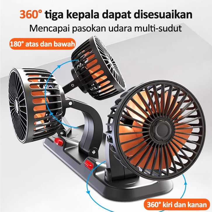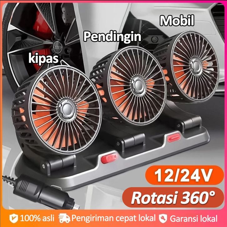 Kipas Mobil Original Angin Sejuk 1 Detik Kipas Angin Mobil Stok Siap Tersedia 12 Volt 24 Volt USB Charger 3 Kepala Moto