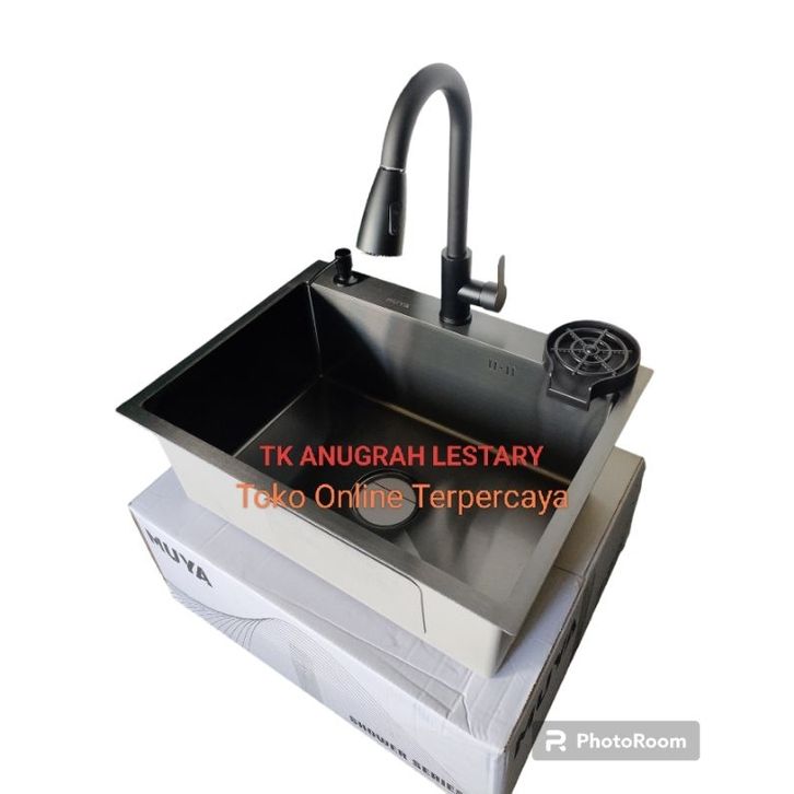 Paket Lengkap Kitchen Sink 6045 BLACK Paket Kran Tarik+Cuci gelas Hitam