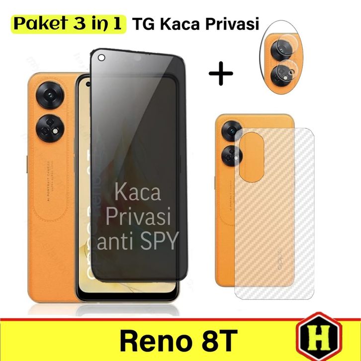 NEW Paket 3IN1 Screen Guard For OP PO RENO 8T 4G Anti Gores Layar Free TG Camera & Skin Carbon Anti Jamur Handphone