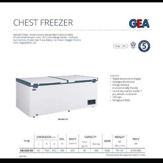GEA AB 650 RX CHEST FREEZER BOX 600 L LEMARI PEMBEKU 600 LITER BY GEA
