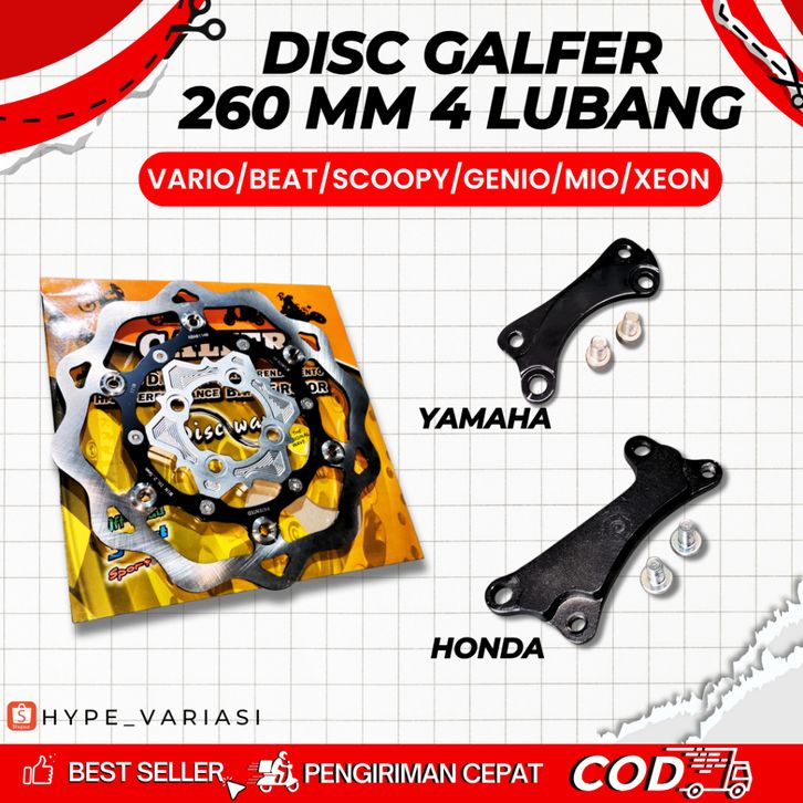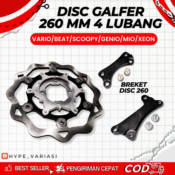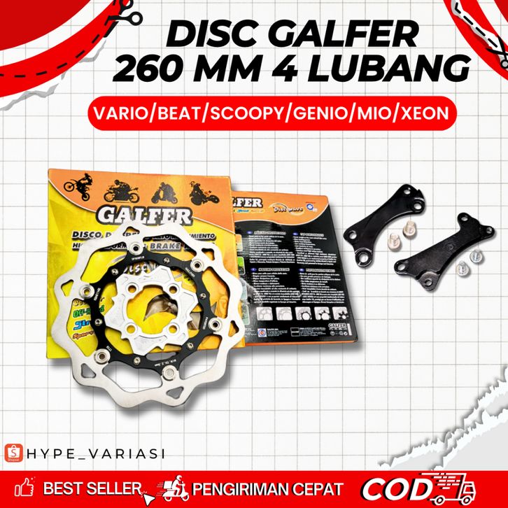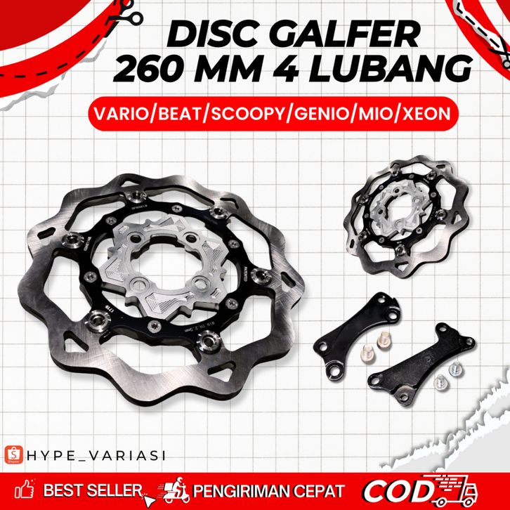 DISC PIRINGAN CAKRAM GALFER WAVE lubbang 4 260 MM DISK GALFER 260 MM VARIO MIO SCOOPY GENIO BEAT FINO