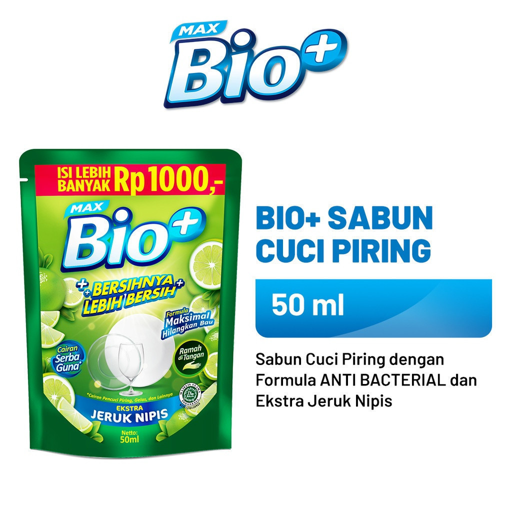 Bio+ Sabun Cuci Piring Jeruk Nipis Anti Bakteri Pouch 50 ml | Merah Jingga Official