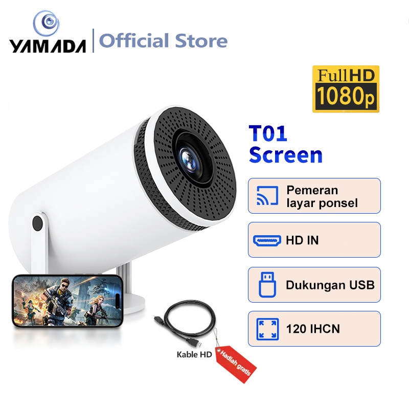 Proyektor T01 Screen 1080p Telepon Wireless Portability Proyektor 5000 Lumens Projector