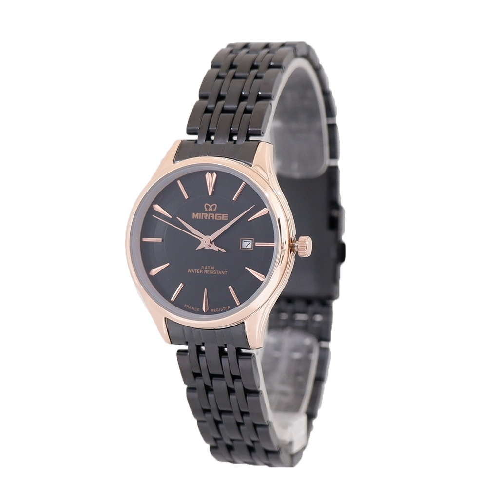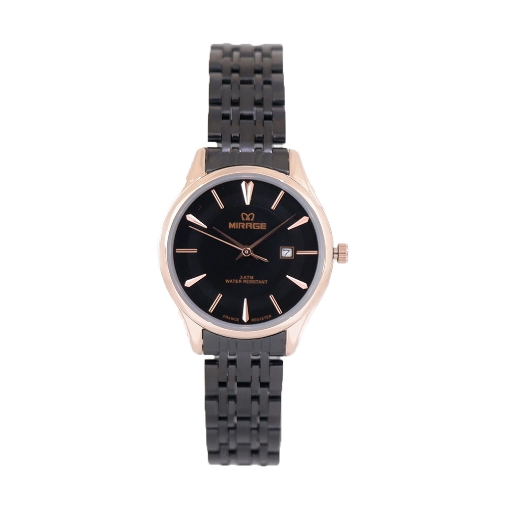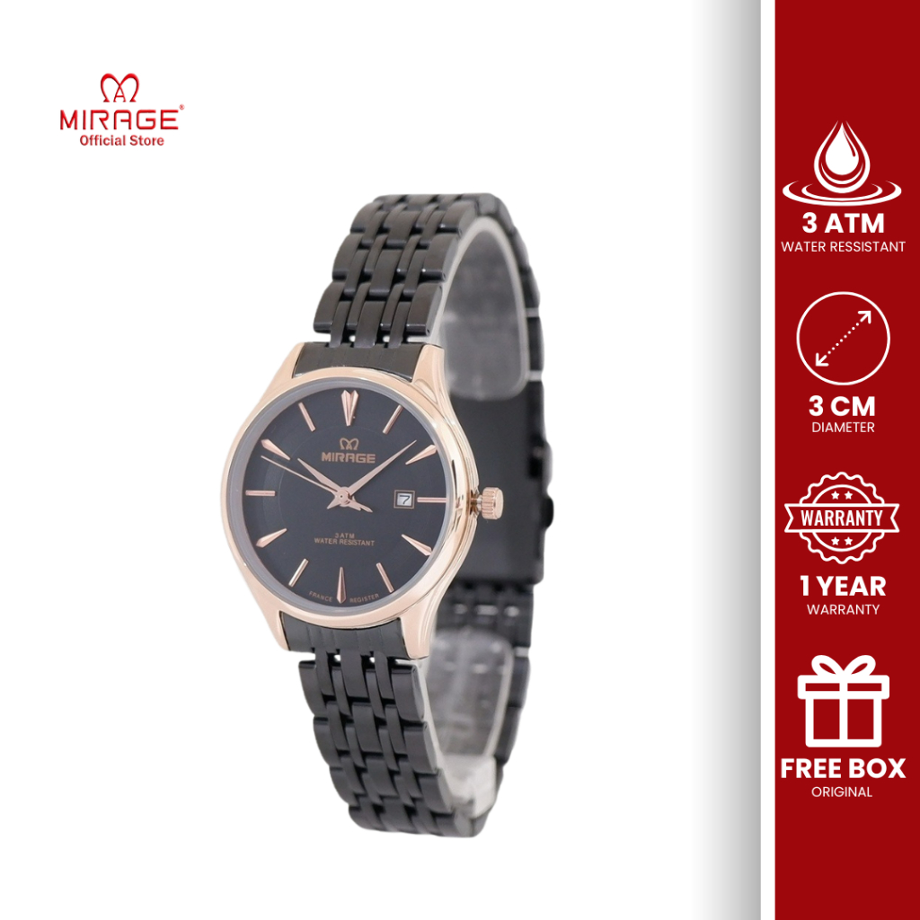 Mirage Original Jam Tangan Wanita Analog Elegant Mewah Hitam Rosegold 8775 L Anti Karat Bergaransi