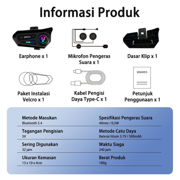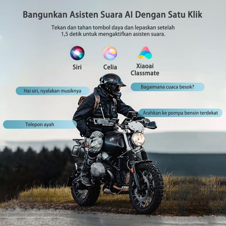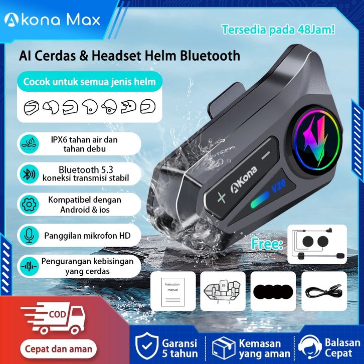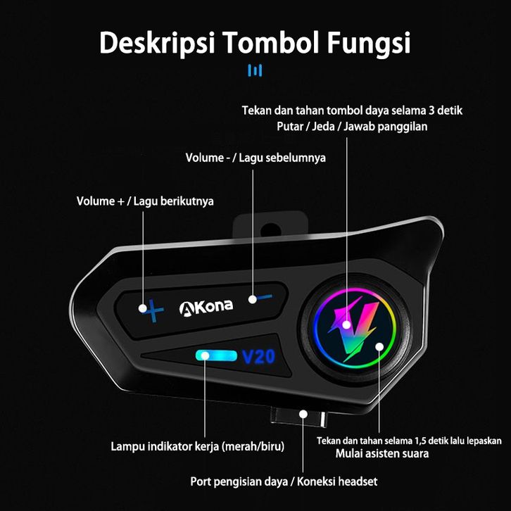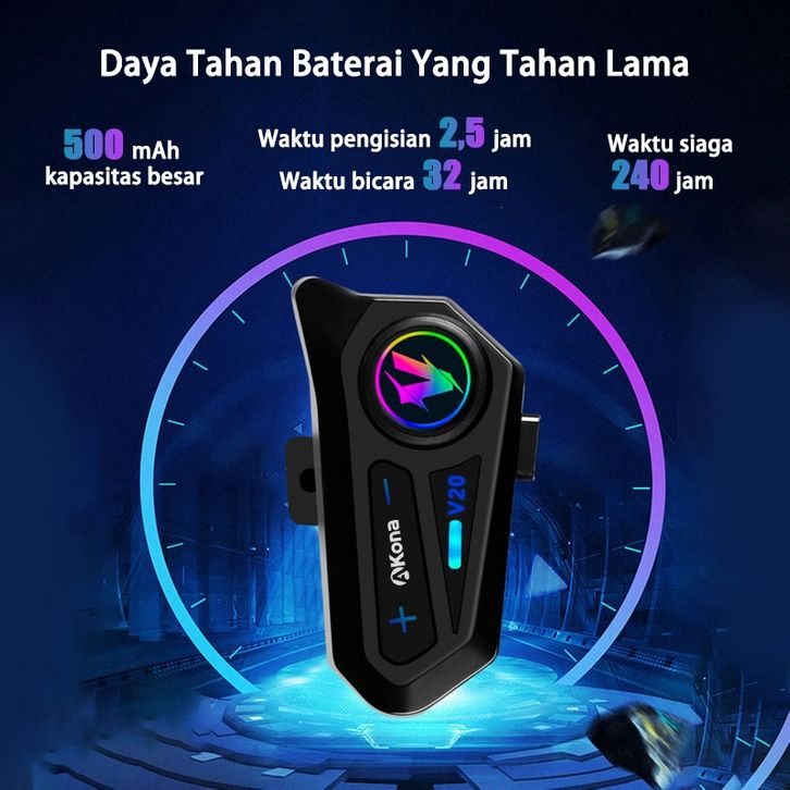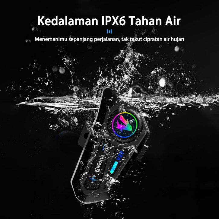 Akona Intercom Helm Motor Headset Helm Bluetooth Hands Free IPX7 Tahan Air Headphone Helmet Wireless (Free Microphone)
