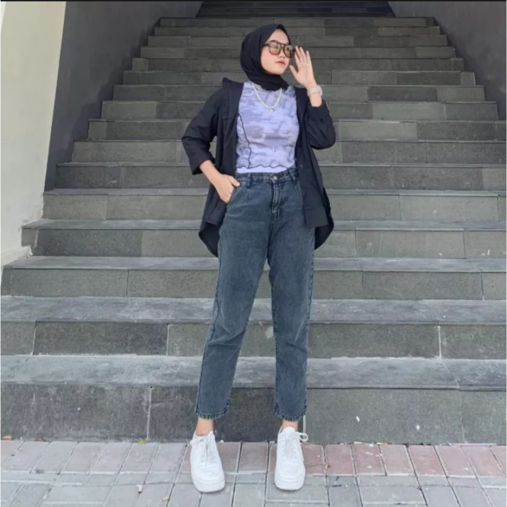 (Gratis Ongkir) MJ Jeans |Celana Jeans Highwaist Wanita Import Celana Panjang Jeans Highwaist Wanita Boyfriend