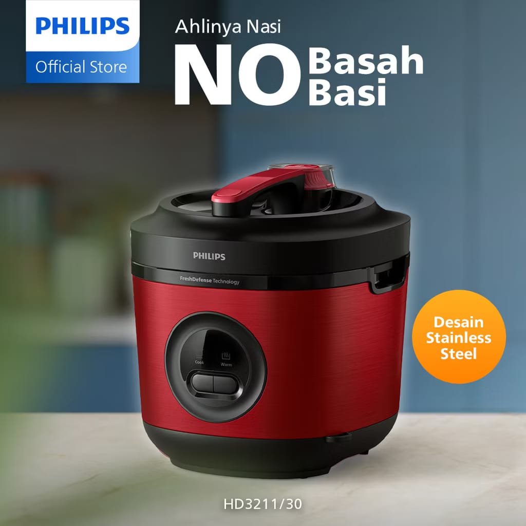Philips Rice Cooker Magicom 1.8 L - 3000 Premium Series HD3211/30 - Merah - Bakuhanseki Inner Pot - Anti lengket