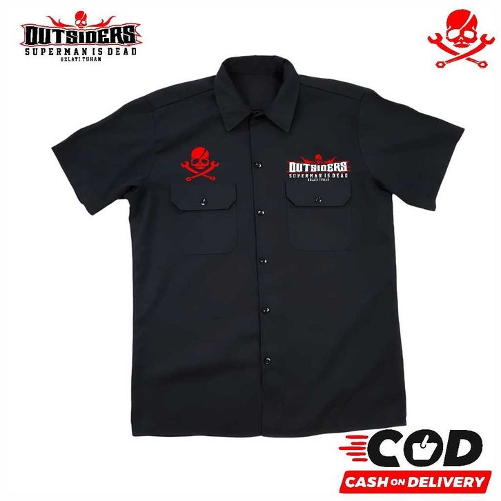 kemeja pendek hitam SUPERMAN IS DEAD model terbaru distro - kemeja WORKSHIRT OUTSIDERS terbaru distro original