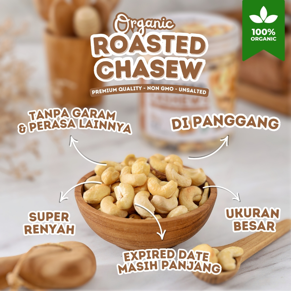 Kacang Mede Premium Panggang Organik Utuh Renyah Oven Roasted Cashew Nut Organic Matang Mente Mete