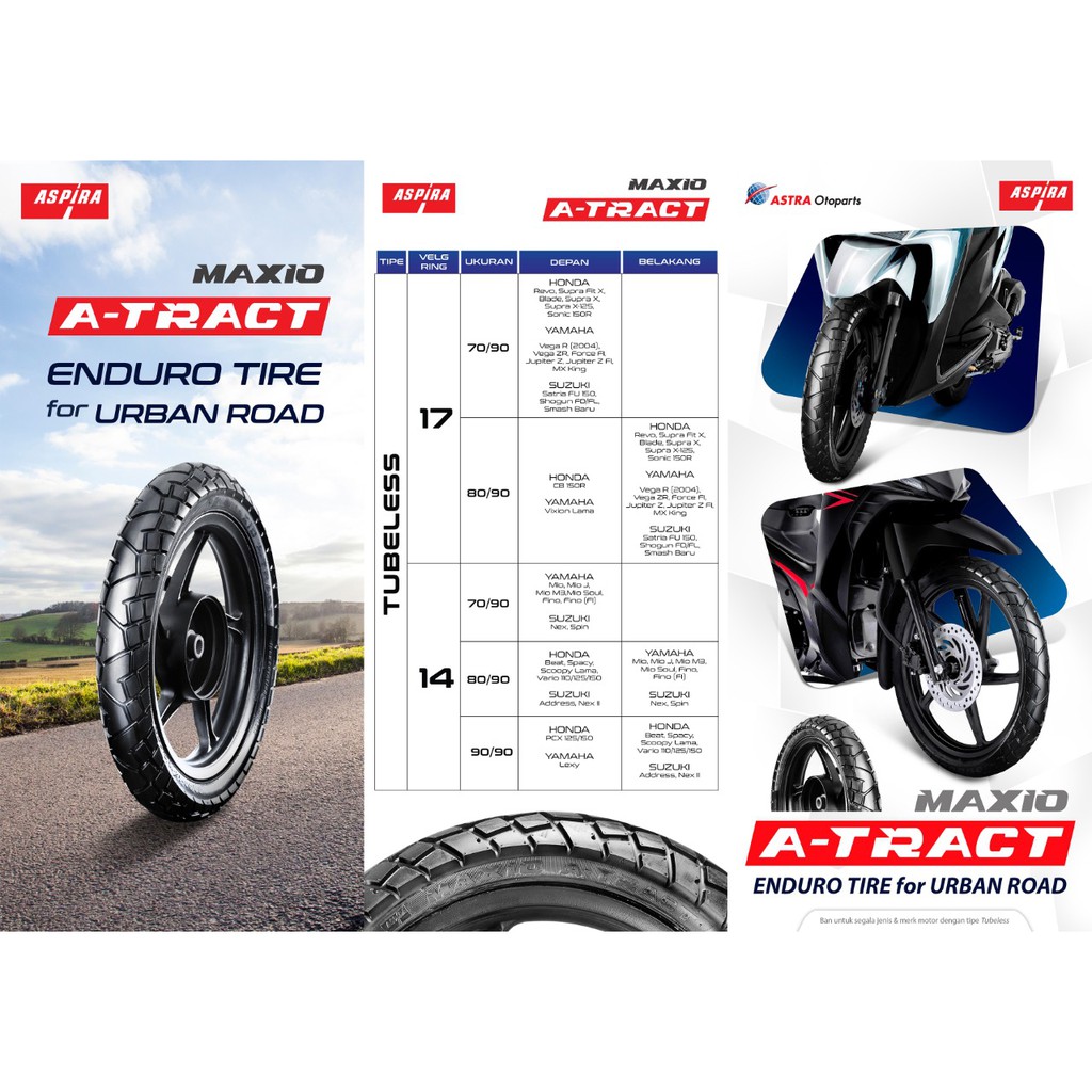 Aspira Maxio A-tract 80/90-14 Tubeless Ban Depan Motor Vario, Ban Belakang Mio