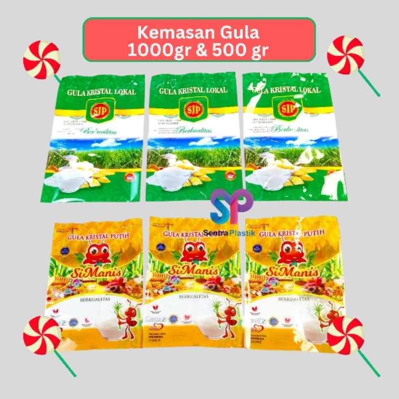 100 pcs Plastik Gula Pasir Simanis / Kristal Hijau Kemasan Tebal 1kg & 1/2 kg Asli Promo