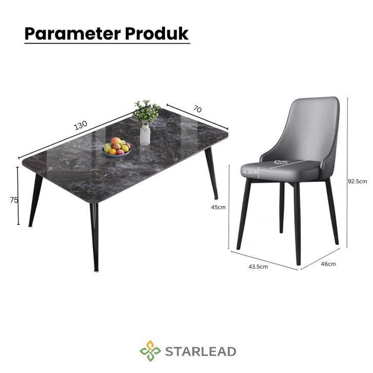 EKSKLUSIF STARLEAD Set Meja Makan Batu Sinter Meja Makan Minimalis Sintered Stone - Iron Art Onyx Black enobb