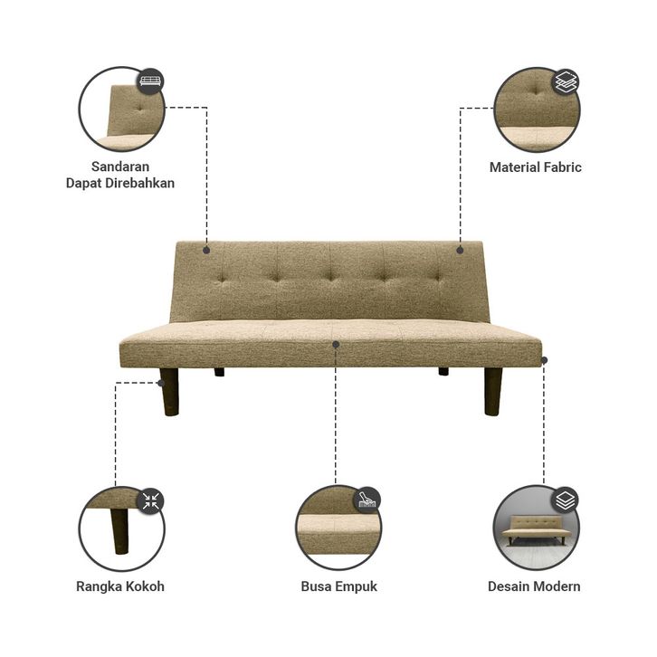 NEW Arrival Informa Daphnie Oakland Sofa Bed Fabric - Cokelat Tempat Duduk Multifungsi Sofa Tidur 2In1 Kursi