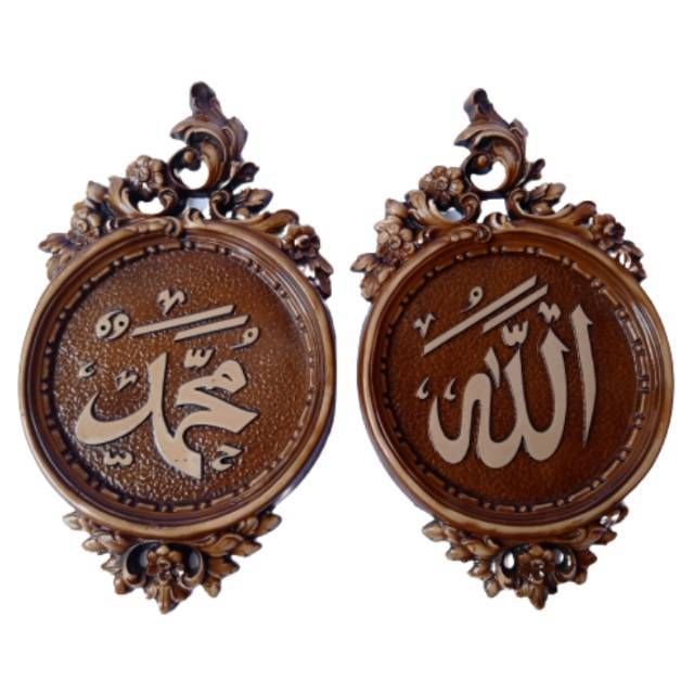 GROSIR TERMURAH! Sepasang Lukisan Timbul 3D Relief Kaligrafi Allah Muhammad 26 cm isi 2 pcs Fiberglass ibebd