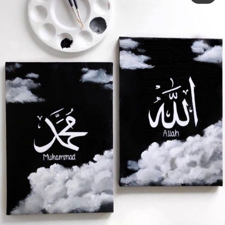 PROMO Lukisan Kanvas Canvas 40x60cm Kaligrafi Allah Muhammad Asli Hasil Lukis Tangan Bukan Print / Lukisan