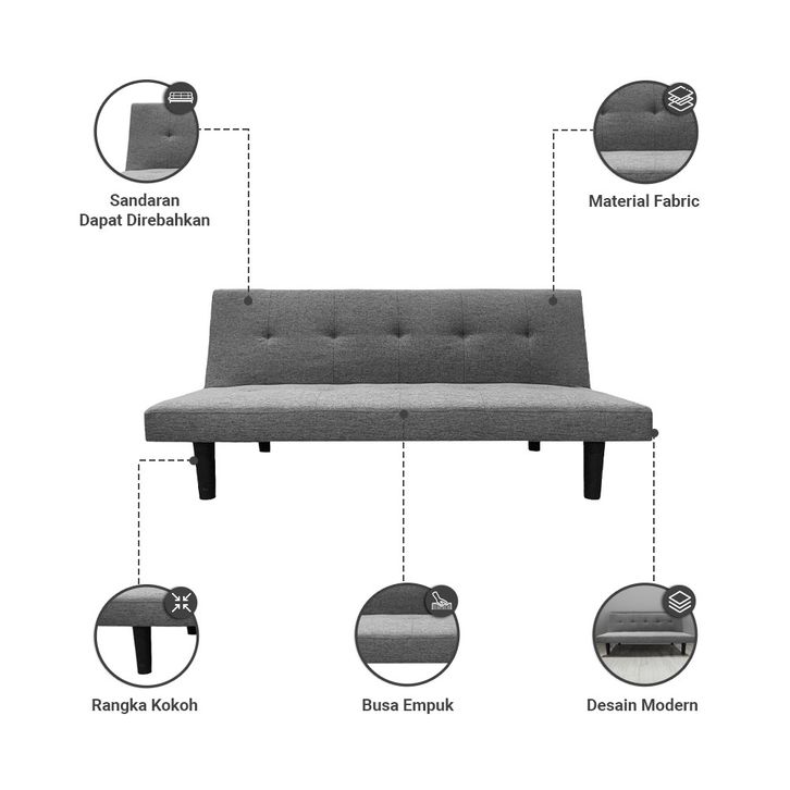 NEW Arrival Informa Daphnie Oakland Sofa Bed Fabric - Abu-Abu Tua Tempat Duduk Multifungsi Sofa Tidur 2In1 Kursi