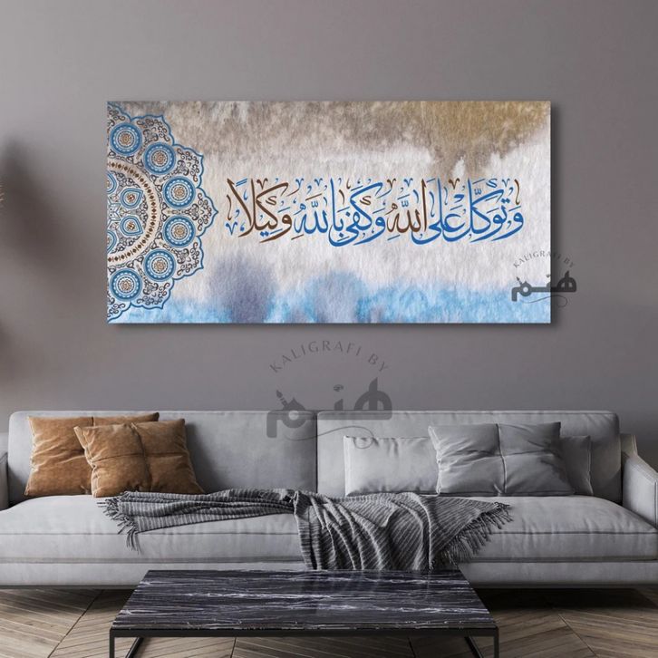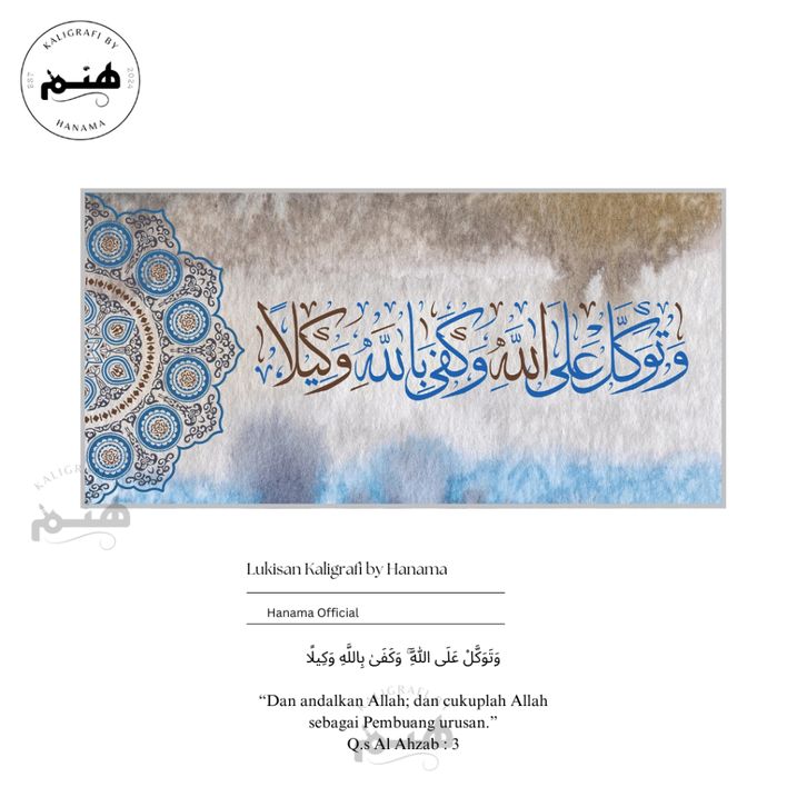 TERMURAH Lukisan Kaligrafi Qur'an Surat Al Ahzab Ayat 3 Abstrak Biru Coklat / Lukisan Kaligrafi Landscape /