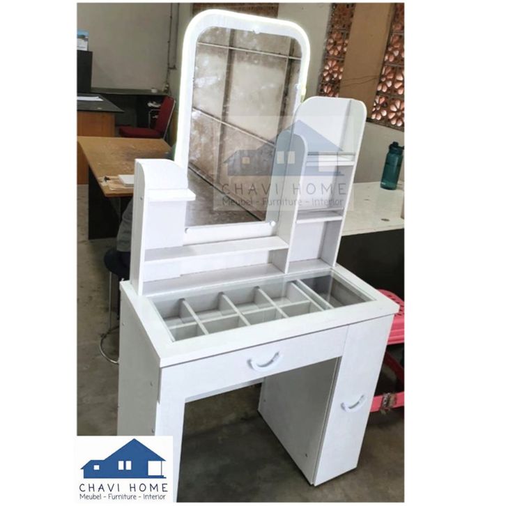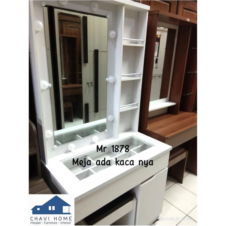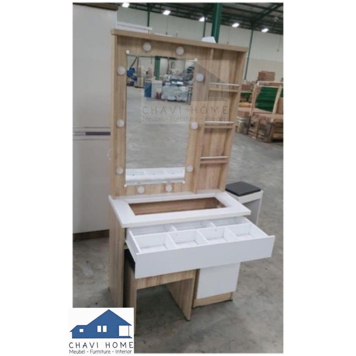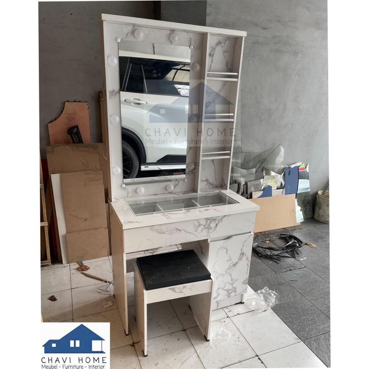 ORIGINAL set meja rias kaca dengan lampu dan kursi stool dengan laci sekat untuk kosmetik/makeup/aksesoris odobk