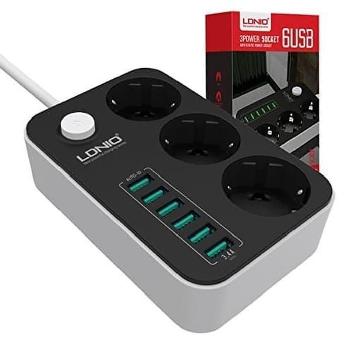 Stop Kontak LDNIO 3 Power Socket 6 USB Charging Anti Static Charger HP 3 Socket Power Strip Cord with 6 USB Ports 1.6m