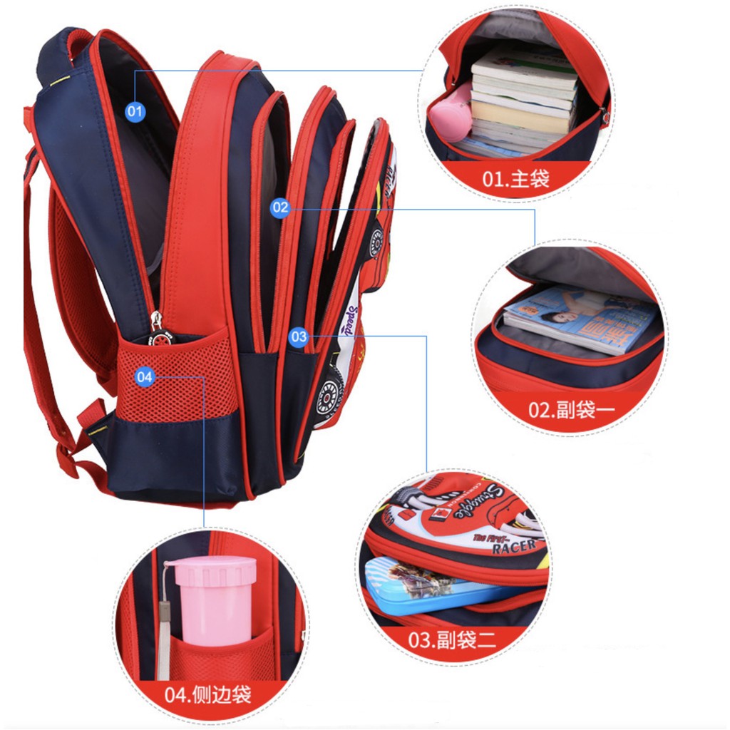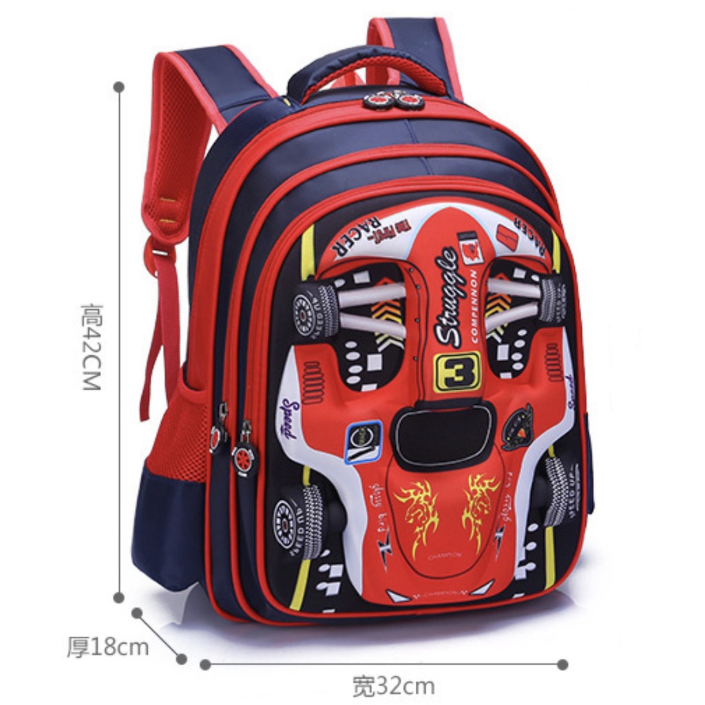 WWH05 Tas Anak Sekolah SD Ransel 3D Timbul Size 16" Besar Mobil Balap Racing Car TKM