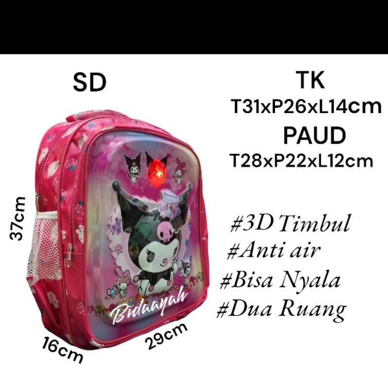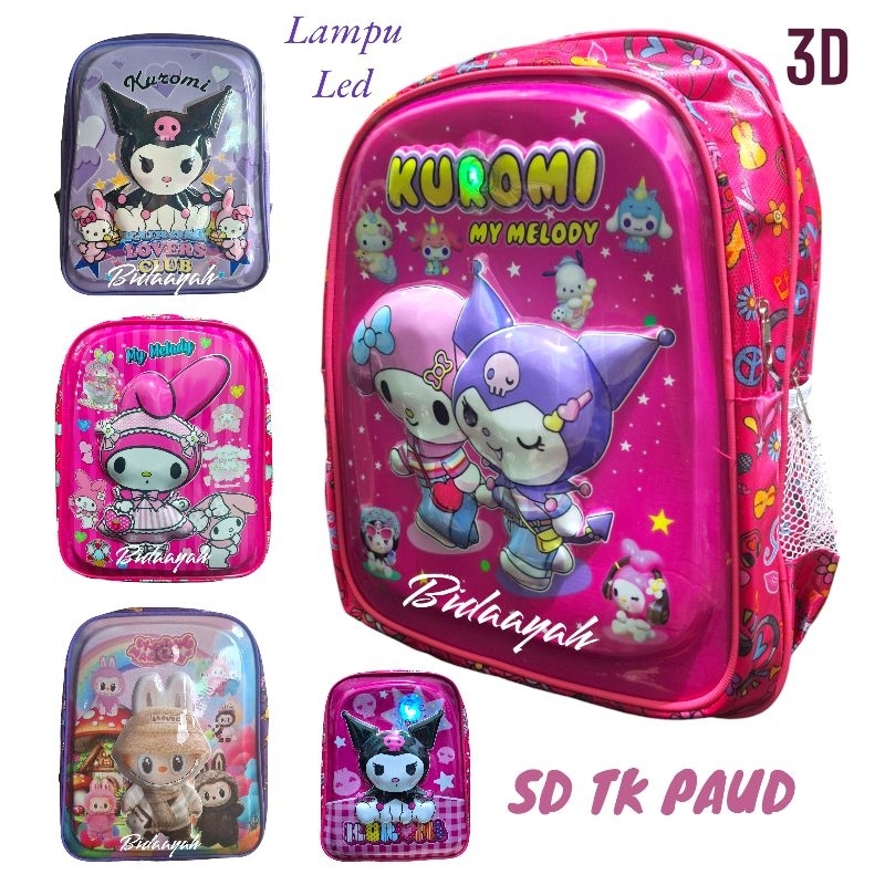 Bidaayah / TAS SEKOLAH ANAK PEREMPUAN LABUBU EMBOS 3D LED SD TK PAUD ( DUA RUANG ) KARAKTER TIMBUL 3D LAMPU LED