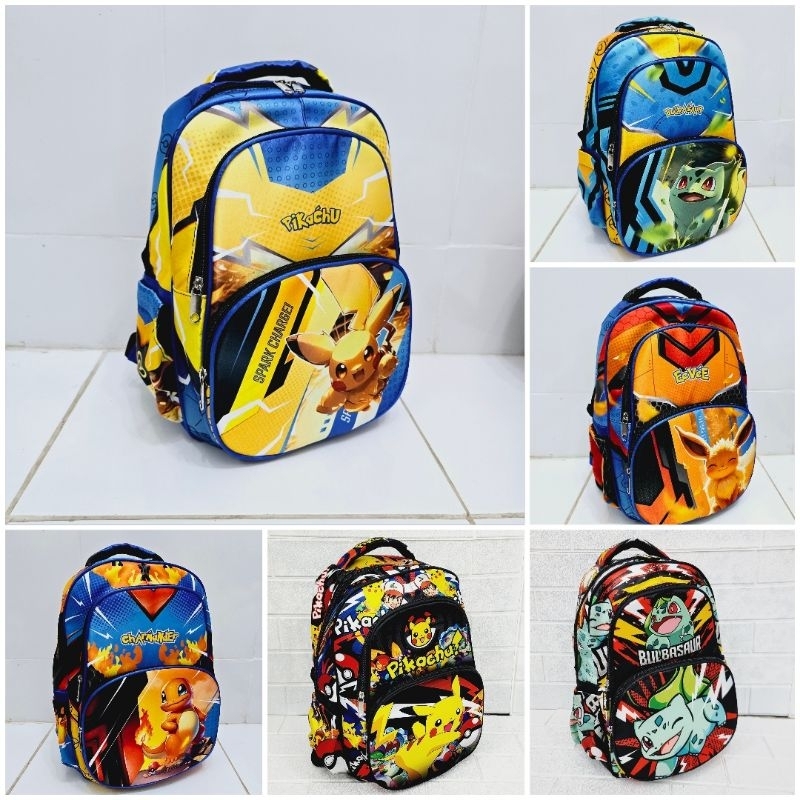 Tas Ransel Sekolah Pokemon PIKACHU - BULBASAUR - CHARMANDER - EEVEE