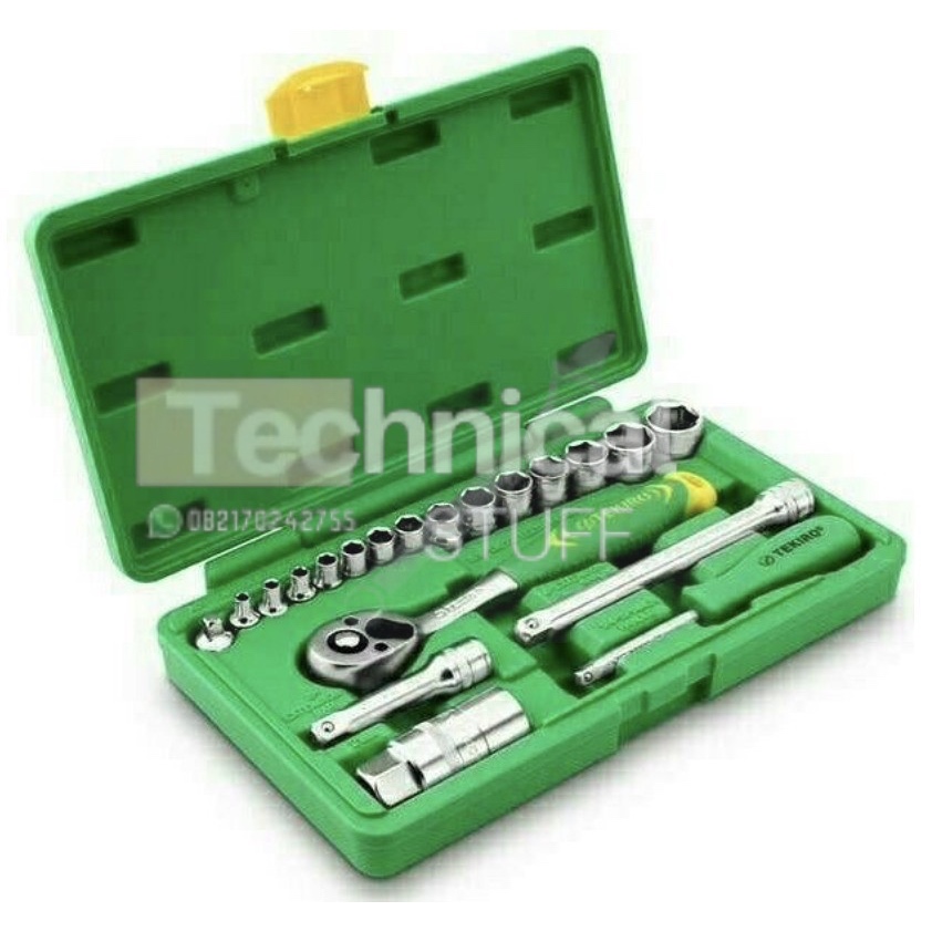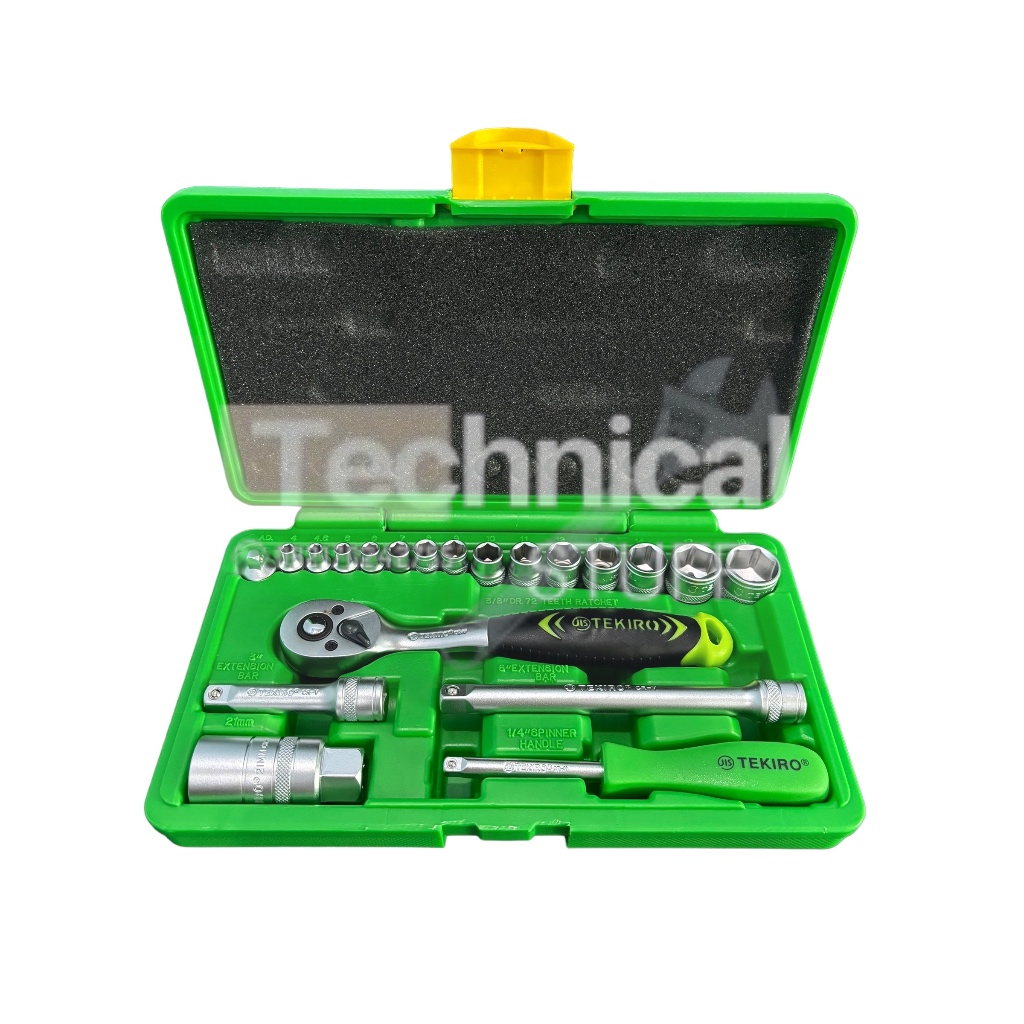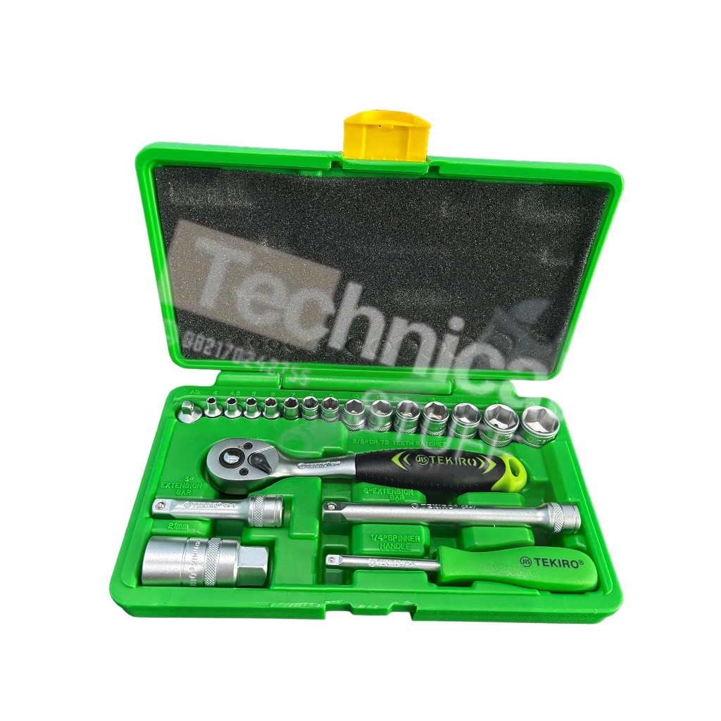 kunci shock full set KUNCI SOCK SET 1/4"-3/8" 6PT @21PCS TEKIRO - KUNCI SOCK SET 6PT MURAH - KUNCI SOK PAKET 21 PCS