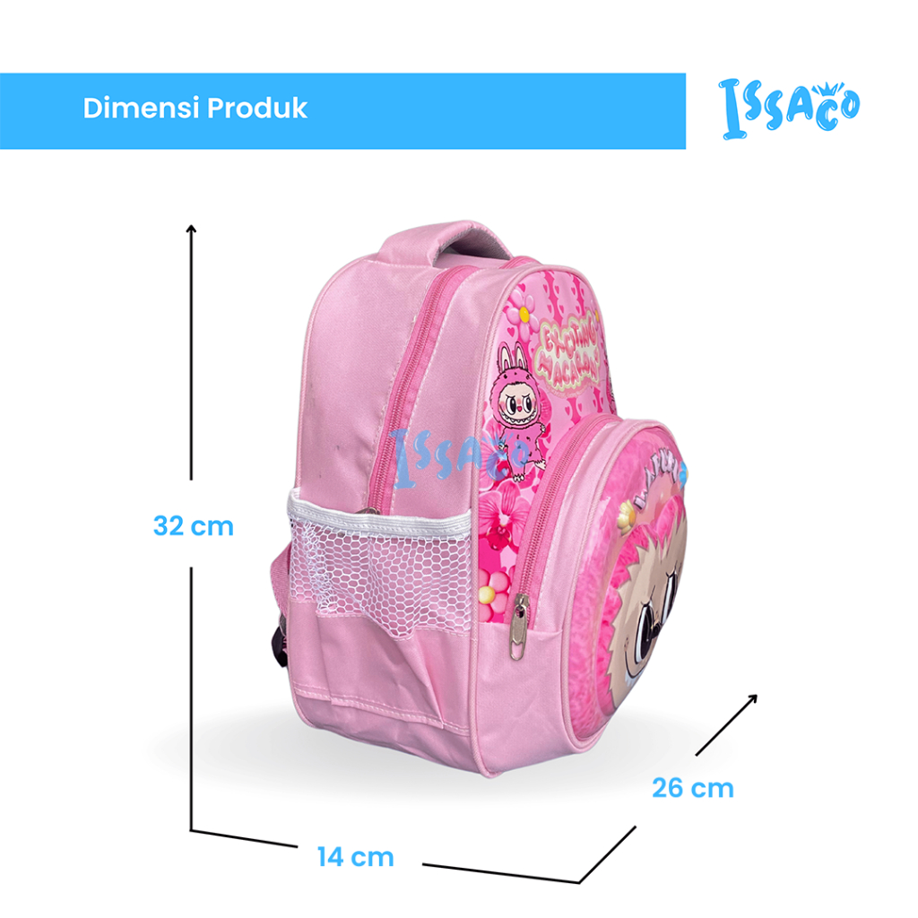 ISSACO Tas Ransel Anak Sekolah PAUD - TK Perempuan 3D Timbul Motif Karakter Labubu