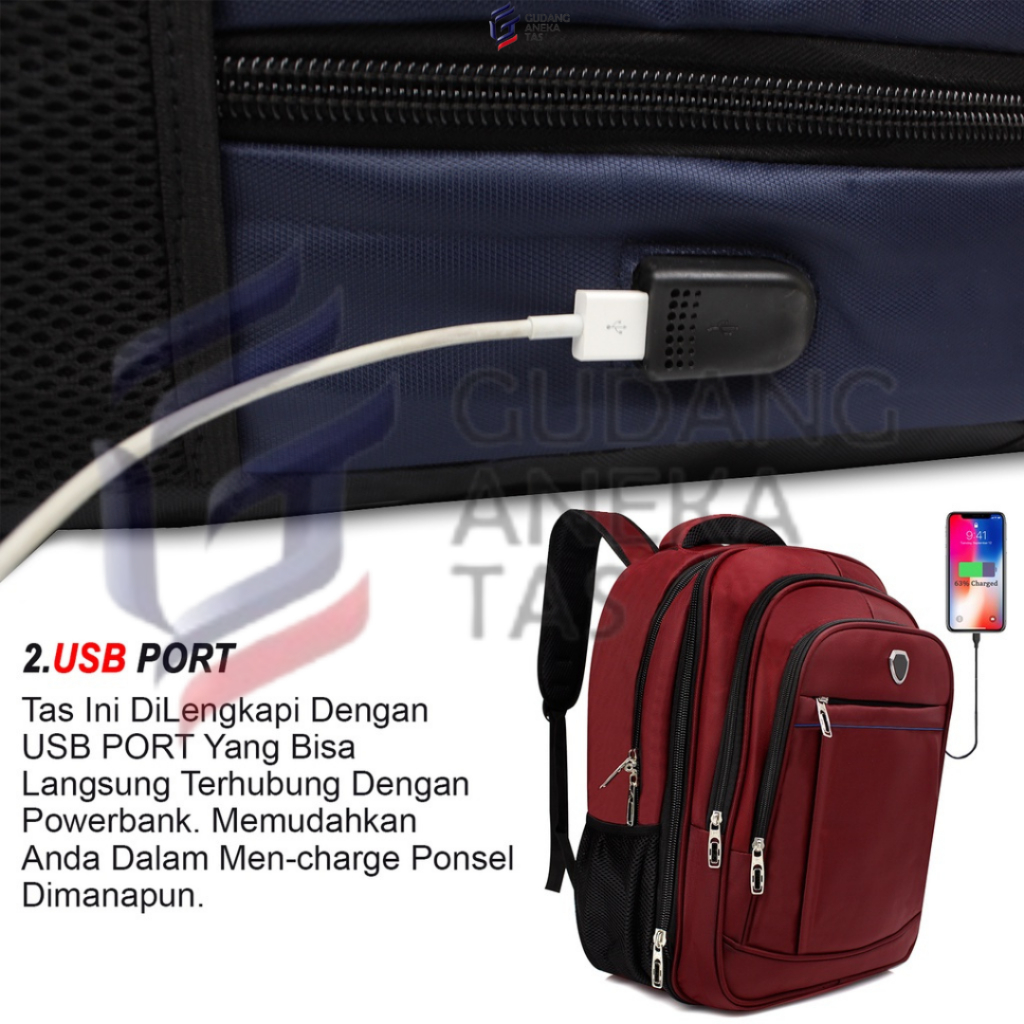 POLO GIVES - Ransel Kerja POLO Original Import 18 Inch + Free Kabel USB + Raincover