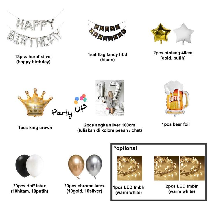 [Paket] Dekorasi Black Gold Silver Birthday Decoration