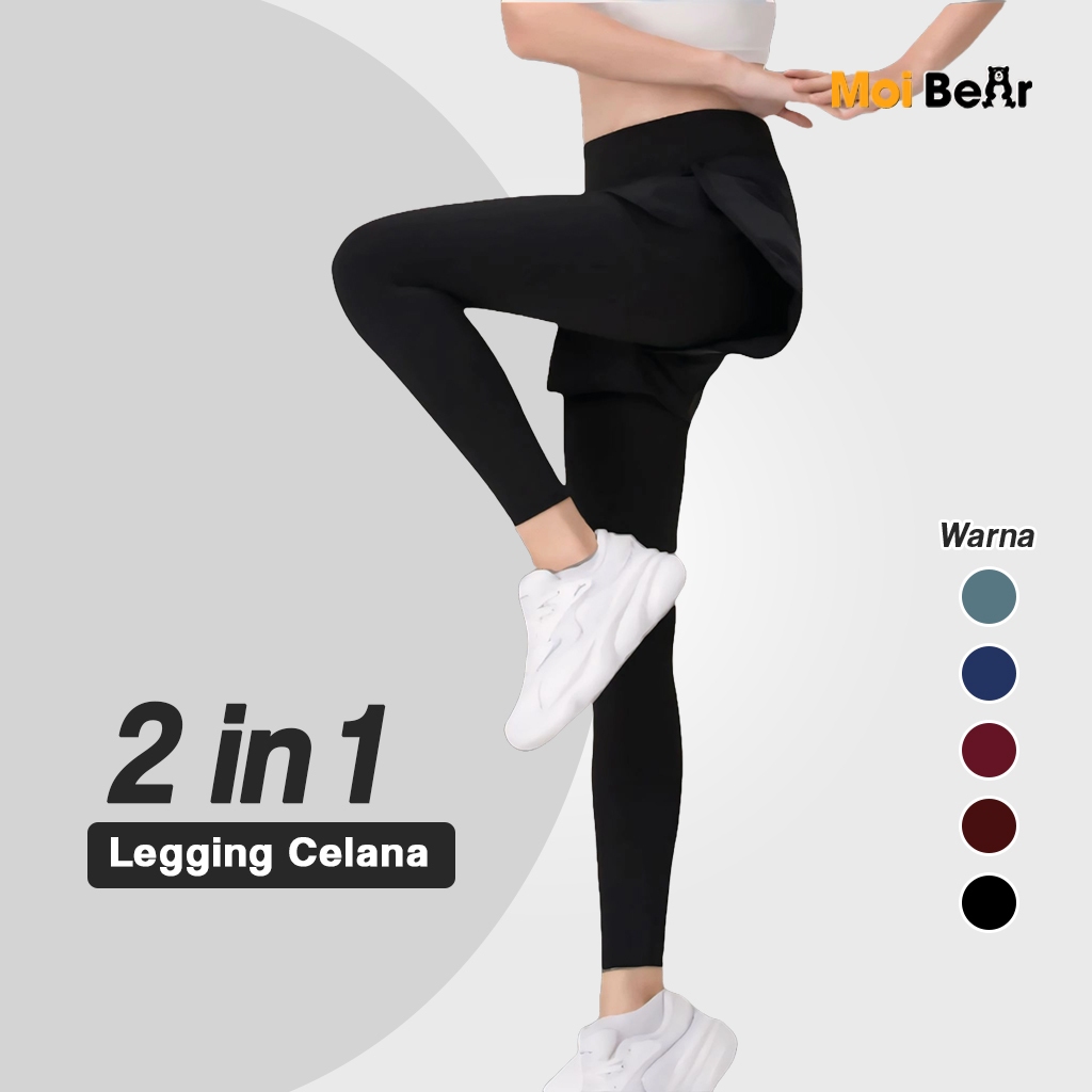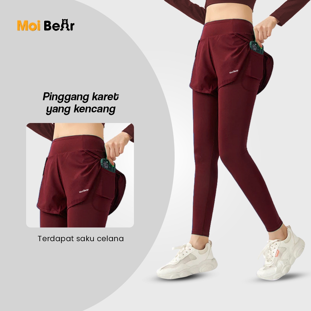 Moi Celana Legging Running Pendek 2In1 Pria Wanita Legging Hotpants Panjang Olahraga Running Lari Fitnes Senam Zumba Bad