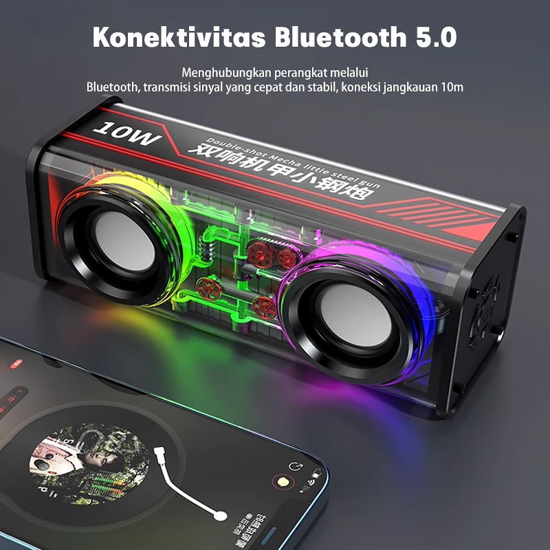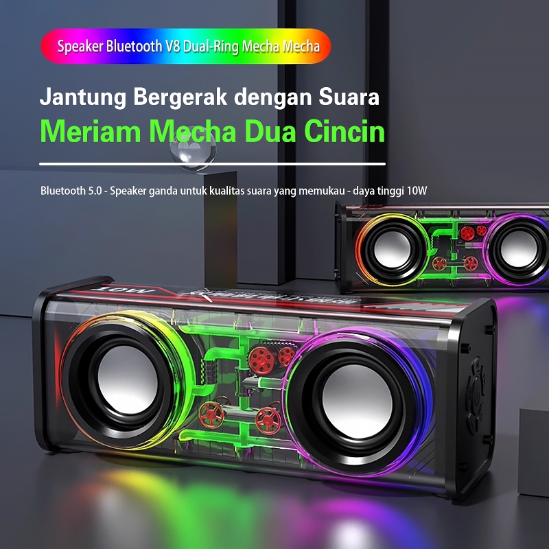 [Mall] SPEAKER BLUETOOTH MINI LED PORTABLE V8 Dual led Transparan Cyberpunk Bluetooth Speaker 13.6W Double Subwoofer