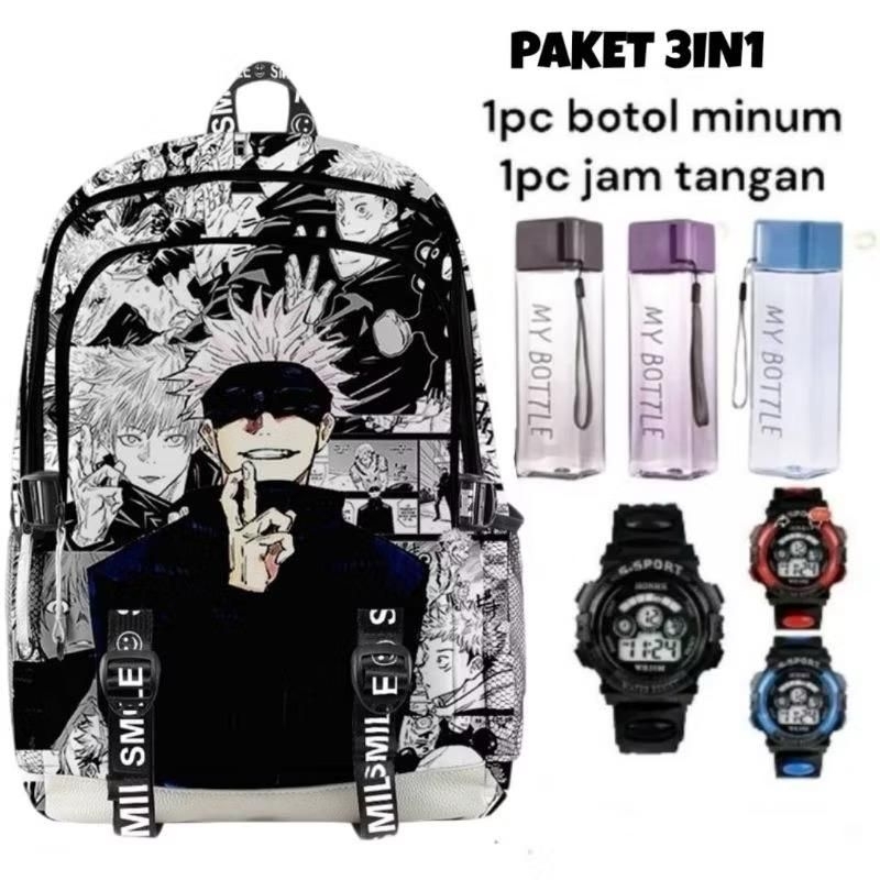 PAKE MURAH 4IN1 Tas Ransel Sekolah Anak Laki Laki SD SMP Karakter ANIME GOJO Kartun